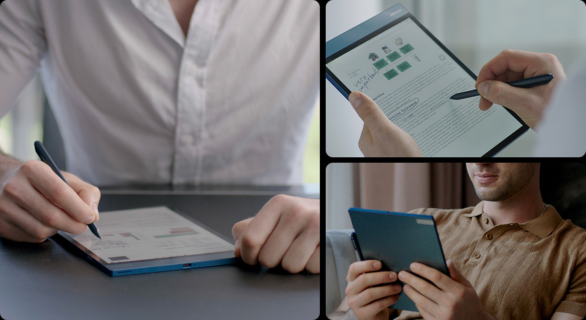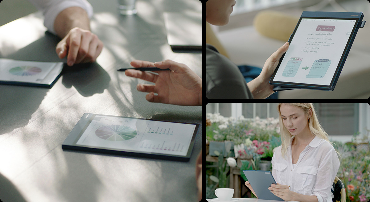 我可以在護眼平板上寫作,為自己制定工作計劃。外出與客戶溝通時,即使在 戶外強烈的陽光下,它的顯示效果依舊十分出色。